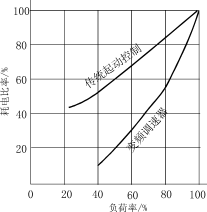 2、傳統(tǒng)的起動控制設(shè)備與采用變頻器耗電比率與負(fù)荷率的比較