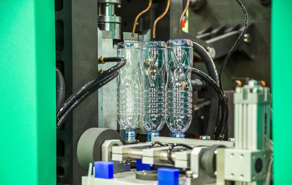 在這個(gè)階段,預(yù)熱殼體(embryo)被放置在準(zhǔn)備良好的吹塑模中,在高壓下充氣,而殼體(embryo)被吹入所需的瓶中。