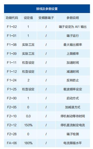 在大圓機運轉中,絕對不能讓電機反轉以及回轉現象,否則針床的針將被折彎甚至斷針。有些大圓機接入單向軸承,可不予考慮。要是系統正反轉完全取決于電機的正反轉控制,則需要設置合理的參數,一方面要設置禁止反轉功能,另外一方面需要直流制動功能。還要注意不能出現失速現象,以免造成斷針等損失。本方案采用模擬量輸入給定頻率。線路簡單(省略)大圓機要求起動時響應要快,低頻大轉矩輸出;停機時要光滑、柔和一些,以保護針床。因此合理設置上表參數是充分發(fā)揮圓機性能的保證,原則是通過調節(jié)F1-13參數得到最佳的低頻轉矩輸出能力以及降低圓機高速運行的振動,通過調起??刂?F2組)以及加減速度時間參數(F1組)得到頻率調節(jié)的光滑性。