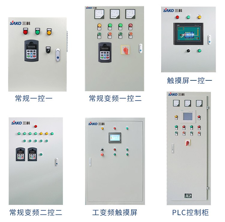 控制柜(變頻柜)主要用于高層建筑無塔供水、消防深井泵恒壓供水等需要根據(jù)實(shí)時(shí)用水情況閉環(huán)調(diào)節(jié)水泵轉(zhuǎn)速的場合。閉環(huán)控制系統(tǒng)由變頻器、智能控制器、壓力傳感器和水泵組成。